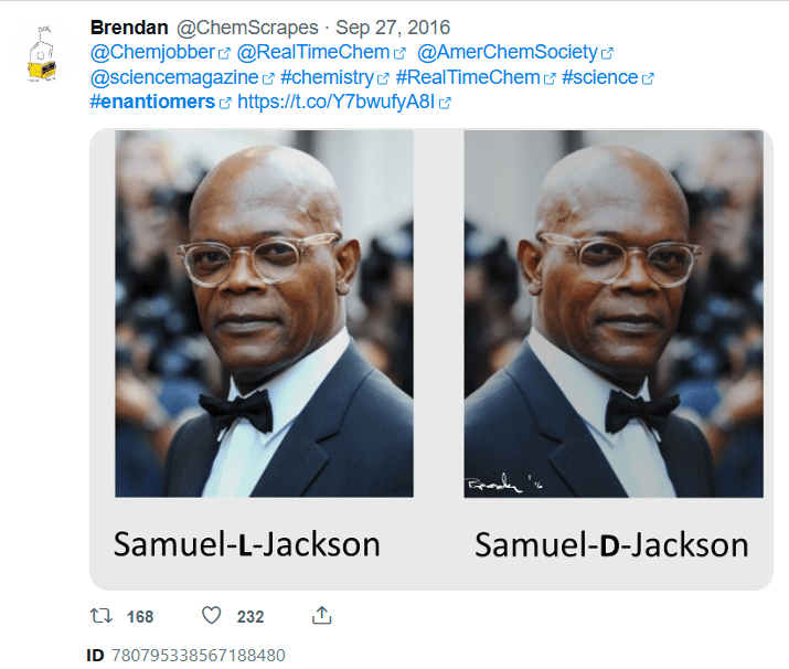 In 2016, the tweet for the Samuel L. Jackson was voted one of the Twitter moments of the year by Chemical and Engineering News, so I was pretty chuffed with that. This meme pops up every now and again, and it’s quite cool to see it out and about living its best life.