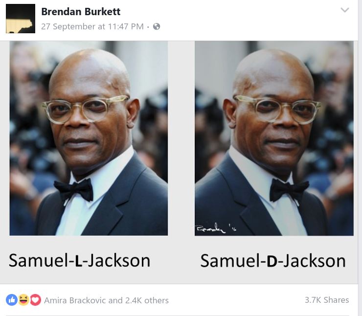 Mind you, even though I signed this meme (on Samuel D. Jackson), it hasn’t stopped people removing it, either by touching the image up, or more annoyingly, sticking their own logo on top of it. This is content theft, pure and simple. I did receive feedback when I complained about this that I had basically stolen the images of Samuel L. Jackson, so people in glass houses shouldn’t throw stones. I didn’t try to explain that appropriation is a valid form of art – I was not claiming I took the pic of Samuel L. Jackson and I modified it to create a new piece of original work.