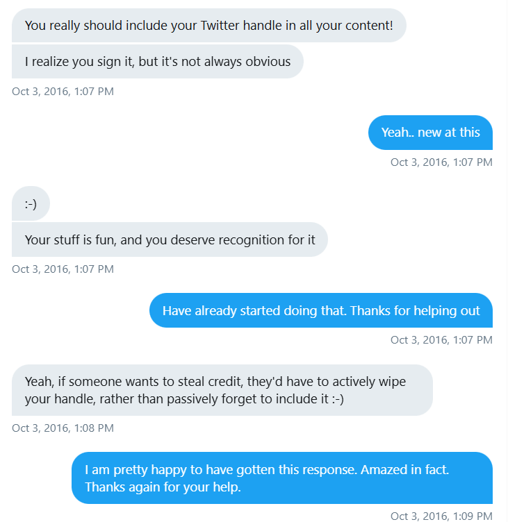 The ChemTwitter community jumped in and “atted” me wherever they saw someone sharing without an attribution. Some also alerted in private, and for the first day or two I contacted and asked people to make sure the image was properly credited. In the end, I gave up trying to track the meme and just let it go.